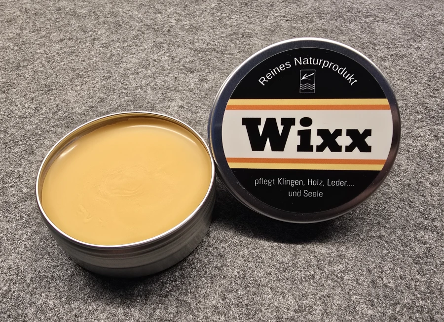 Wixx ist ein reines Naturprodukt und perfekt geeignet, um dein Messer in Schuss zu halten. In vielen Versuchen wurde die Formel von Wixx immer wieder angepasst, um ein, aus meiner Sicht, perfektes Pflegemittel zu sein. Wixx ist dabei nicht nur meine erste Wahl, wenn es um meine Klingen geht, sondern auch zur Pflege der Griffe, Lederscheiden und vieler anderer Oberflächen.
